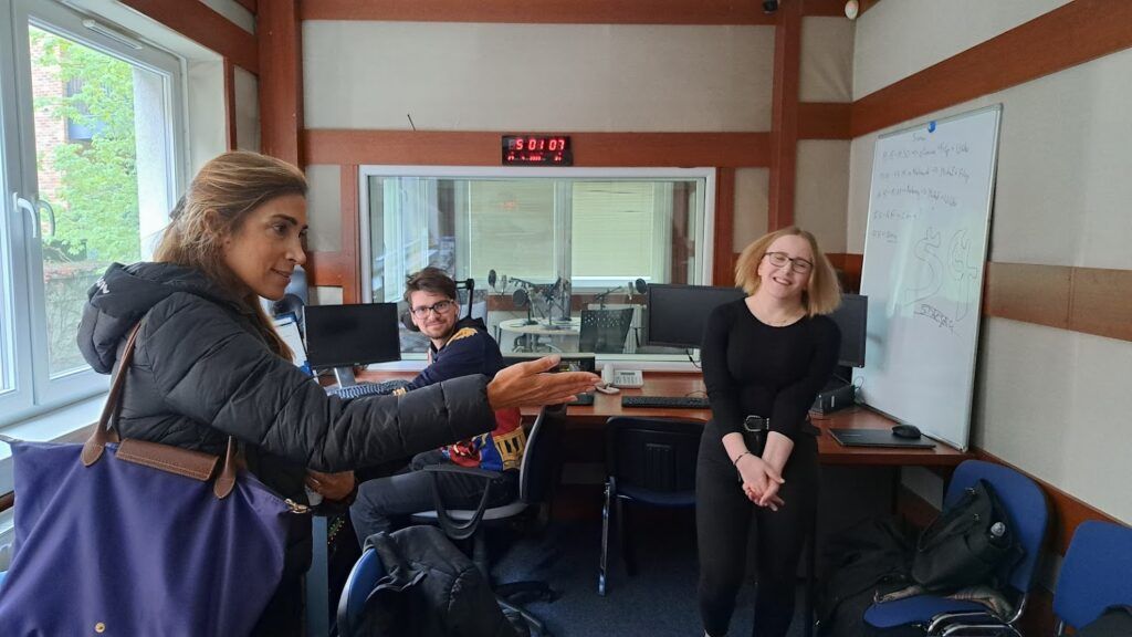 Stacja Czwarta, czerpiąc inspirację z zorganizowanej wizyty, postanowiła porozmawiać z Panią Doktor – oczywiście nie mogło przy tym zabraknąć wszechobecnych w centrum dowodzenia Kołem Naukowym HEADLINE mikrofonów. Całość przeprowadzonego wywiadu w j. angielskim już wkrótce będziecie mogli posłuchać w naszym radiu, a tymczasem nasz specjalny gość przesyła gorące pozdrowienia dla naszych słuchaczy i całej społeczności akademickiej AIK!
